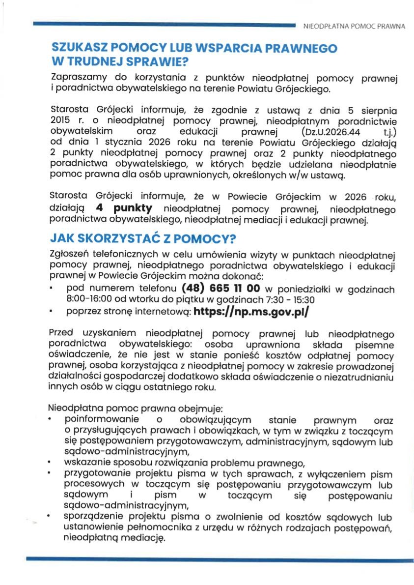 Nieodpłatna Pomoc Prawna w Powiecie Grójeckim